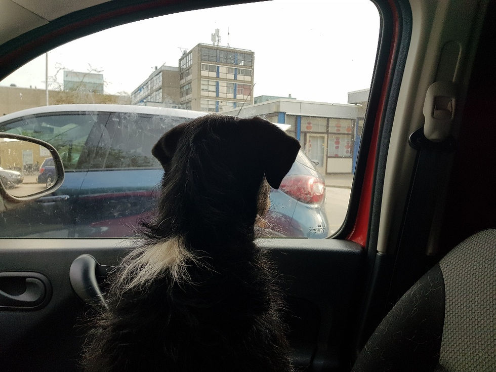 Lara mist haar dagelijkse uitjes naar het bos met Dick al zes weken. Ik ga zo vaak als ik kan en vandaag hebben we weer een fijne wandeling kunnen maken. Naast het bos mist ze ook haar baan als bijrijder naar de supermarkt en naar de Welkoop. Vandaag hebben we dat goedgemaakt. Ze mocht mee naar het ziekenhuis om Dick naar een afspraak te brengen. Ze bleef in de auto en hield goed in de gaten of Dick al weer in zicht was. Daarna ben ik in de middag ook nog twee keer naar het ziekenhuis gereden omdat Dick nóg meer afspraken had. Die vielen precies tijdens voertijd, dus moest ik heen en terug, daarna voeren en daarna weer heen en terug om Dick op te halen. Tjonge, als je wat met je gezondheid hebt, dan heb je een dagtaak aan al die bezoekjes aan artsen. Inmiddels gaat het iets beter met de wond aan zijn been, maar nog niet goed genoeg om de hersteloperatie aan te kunnen. Vandaar al die bezoekjes aan de plastisch chirurg, de wondspecialist, de anesthesist en de apotheker. Je zou er het heen en weer van krijgen. Lara vindt het niet erg trouwens.