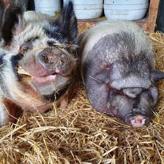Ollie is een schat van een varken, hij is lief, sociaal, vrolijk en grappig. Grietje vindt dat hij heel lekker ruikt en kan minutenlang aan hem zitten snuffelen. Ik trouwens ook :-).